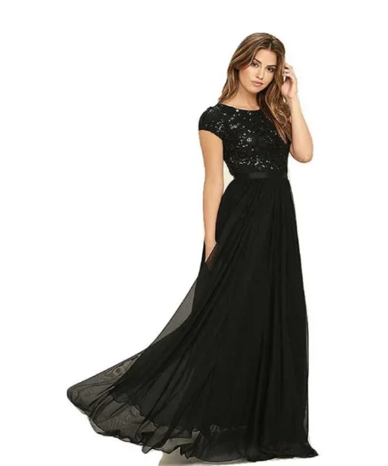 Royal Solid Georgette Blend Stitched Flared/A-line Gown (Black)