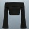 Elegant Off-the-Shoulder Ribbed Crop Top with Flare Sleeves