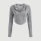 Grey Marled Zip-Up Corset Hoodie with Curved Hem