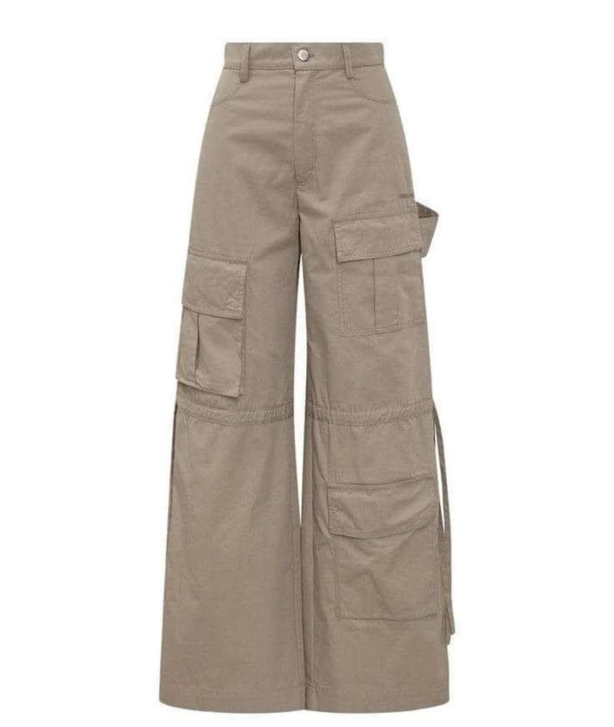 The standout feature of this piece is the intricate pocket architecture, including deep cargo pockets and industrial-inspired strap details. Strategically placed drawstrings at the mid-leg allow you to experiment with the volume, while the neutral taupe hue ensures they pair seamlessly with everything from fitted bodysuits to oversized graphic tees. Whether you’re aiming for a “techwear” inspired look or a relaxed weekend outfit, these cargos provide the perfect balance of rugged durability and modern style.