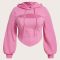 Women’s Pink Cut-Out Corset Style Waffle Knit Hoodie