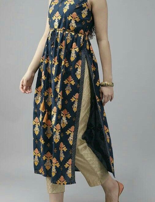Indigo Blue Sleeveless A-Line Kurta with Drawstring Waist